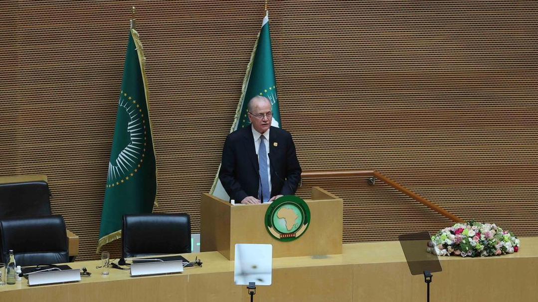 当地时间2月14日,巴勒斯坦总理穆罕默德·穆斯塔法代表巴总统马哈茂德·阿巴斯在埃塞俄比亚首都亚的斯亚贝巴参加第39届非洲联盟峰会,并代为宣读了阿巴斯向峰会提交的讲话。